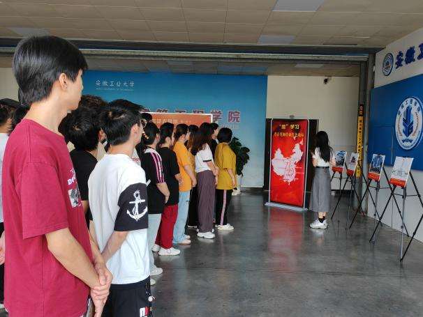 讲解员同学深情地讲述着每幅作品背后的历史故事和创作灵感,让建工学子对绘画作品有了更深的理解和感受,随着参观学习的深入,同学们心情愈发激动,他们为祖国的繁荣昌盛感到自豪,也为能在这样的特殊时刻,通过艺术的形式与历史对话,与先烈们的精神产生共鸣,感到无比的自豪。
