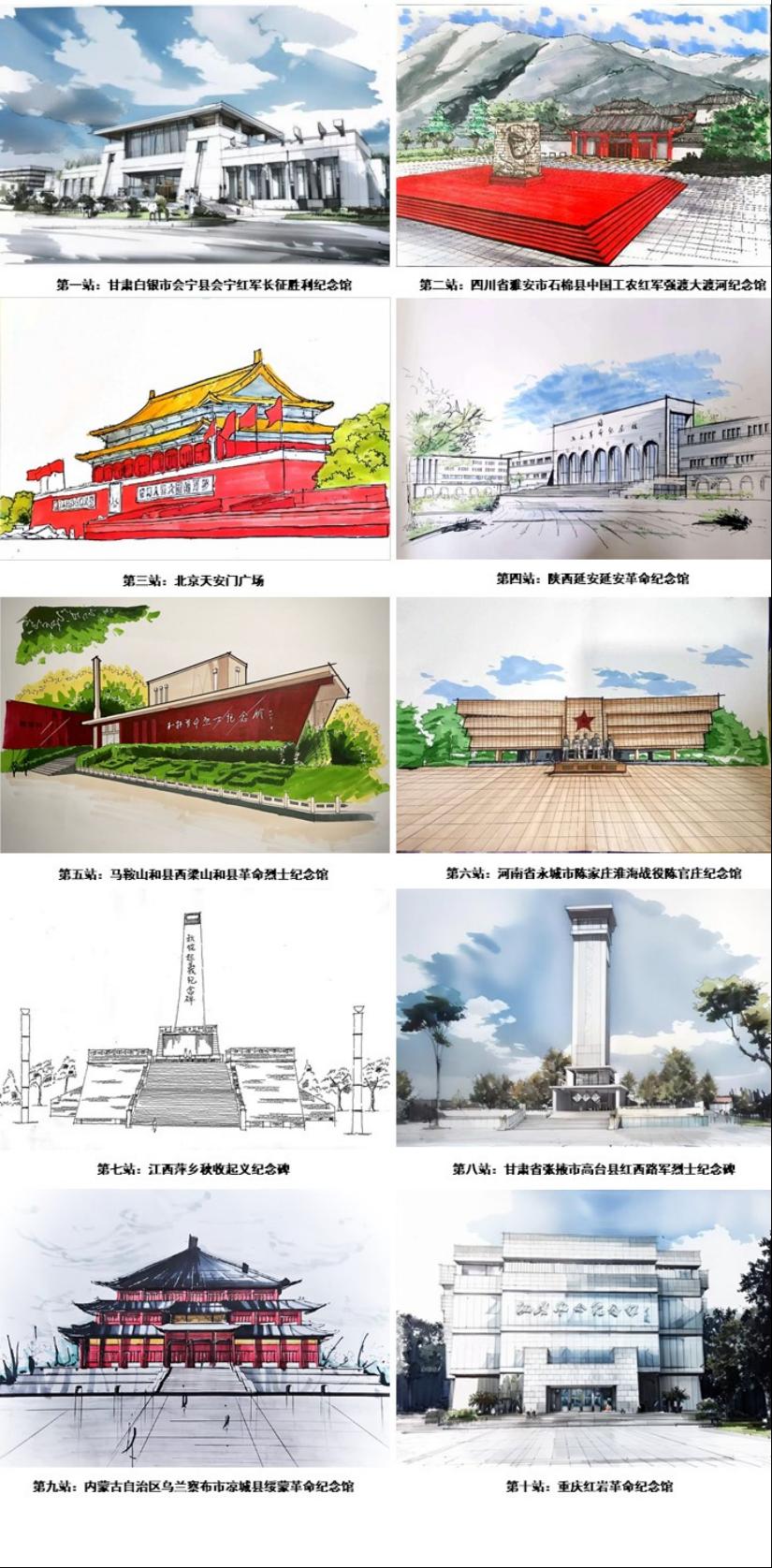 学子充分结合专业特色开展“‘绘’学习——青春笔触绘就红色地标”画展活动。同学们以笔为舟,穿梭于国内十大红色革命圣地,沿着征途共同回顾波澜壮阔的红色历史,深情回望革命岁月,致敬不朽精神。