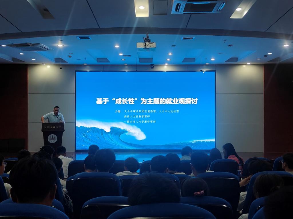 邀请太平洋建设集团总裁助理、人才中心总经理于伟于图书馆第一报告厅开展《基于“成长性”为主题的就业观探讨》专题讲座。太平洋建设集团总裁助理、人才中心总经理于伟一行人员、香港六合彩