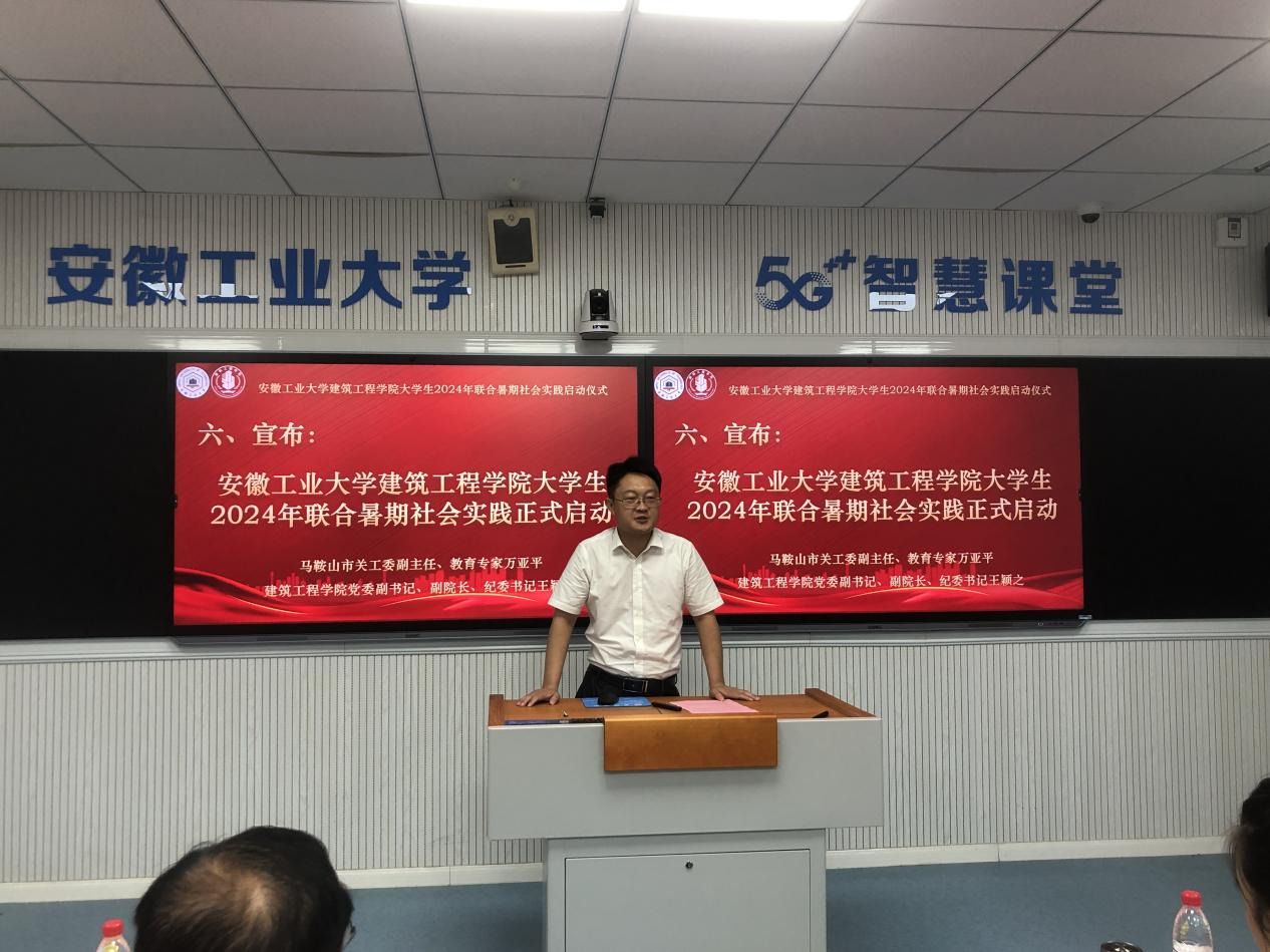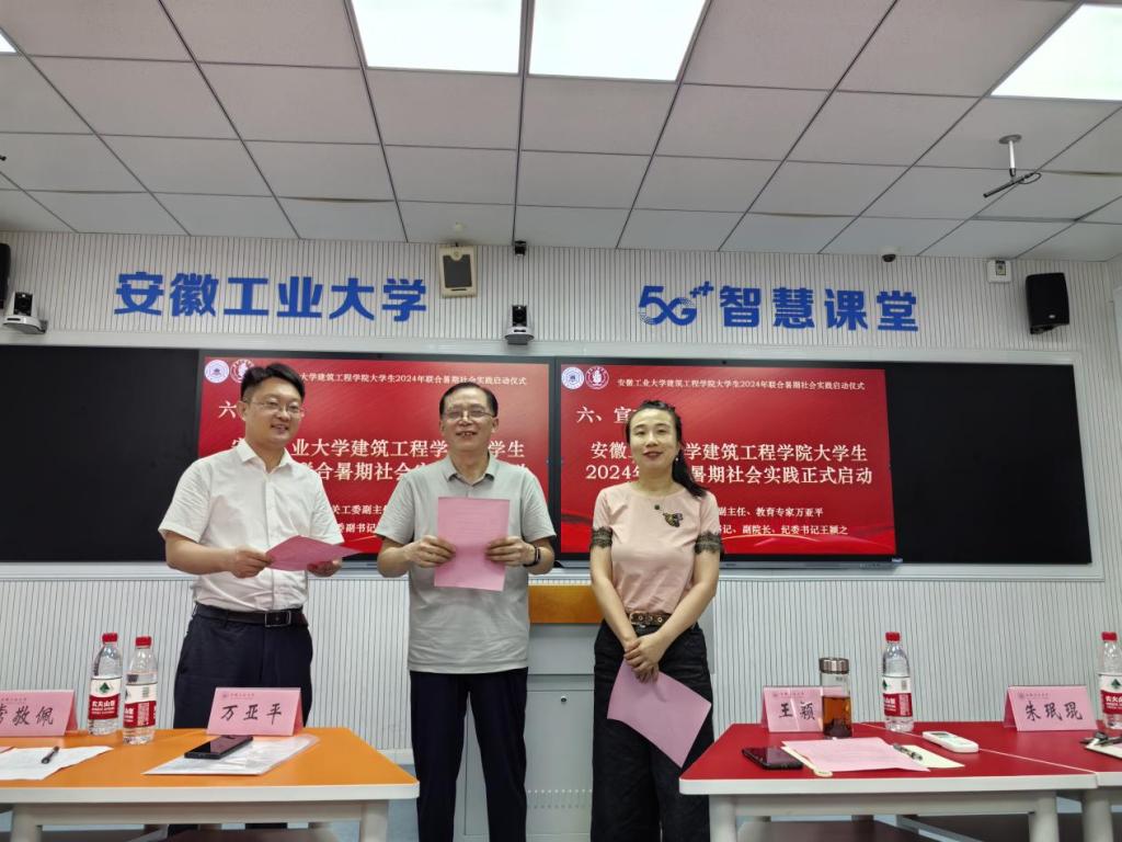 6月30日上午,香港六合彩 在秀山校区教D201智慧教室举办2024年大学生暑期社会实践启动仪式。马鞍山市关工委副主任万亚平,香港六合彩 党委书记、关工委主任张虎,院党委副书记、纪委书记、副院长、关工委副主任王颖之,市水利局河长制工作科科长、市民间河长联合会督导常敬佩,市民间河长联合会副秘书长董磊,花山区社会组织联合会各级组织负责人,学院团委书记、团委副书记、辅导员以及部分学生代表参加。仪式由院团委书记崔余龙主持。