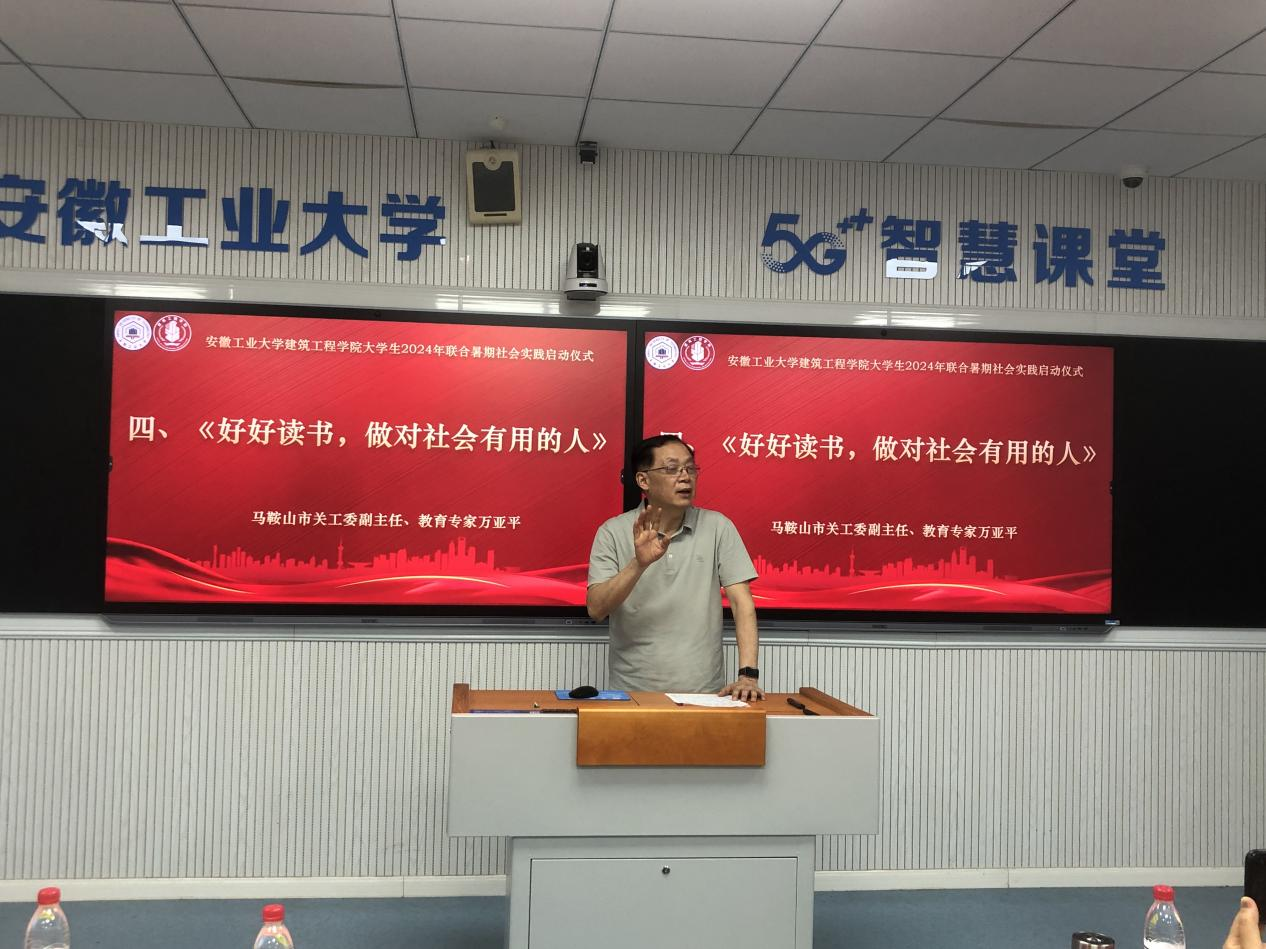 万亚平做专题讲座《好好读书,做对社会有用的人》,以程开甲院士等老一辈科学泰斗为我国核武器研制和核试验等作出的突出贡献为榜样力量,希望同学们能立足新时代,努力成为能担当起民族复兴大任的时代新人。常敬佩以《强化河湖长制守护幸福河湖》为题,分享马鞍山市关于河湖保护系列措施,并希望同学们能够共同维护水环境、水生态,让每条河都实现“河畅、水清、岸绿、景美、人和”。会议最后,由万亚平、张虎、王颖之共同宣布:香港六合彩 大学生2024年联合暑期社会实践正式启动。