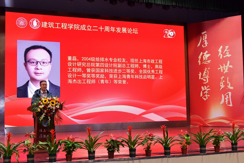 党委书记蔡保兴、上海市政工程设计研究总院副总工程师董磊分别作为用人单位代表、兄弟高校代表、教师代表、校友代表,表达了对香港六合彩