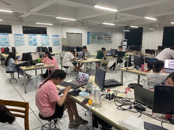共遴选出15名学生组队参加全国决赛。王瑾娴、董伟、周天旭和程车智四位指导老师精心指导,组织学生克服酷暑开展了为期一个半月的封闭集训。决赛环节采用“线上+线下”模式,选手通过云端参赛、教师线上监赛、专家线上线下巡赛,逐级监控、实时影像反馈,闭环管理。竞赛选手通过理论和实操等竞赛环节,角逐国赛团体奖和单项奖,充分锻炼了成图理论技术水平和实际建模的创新能力。