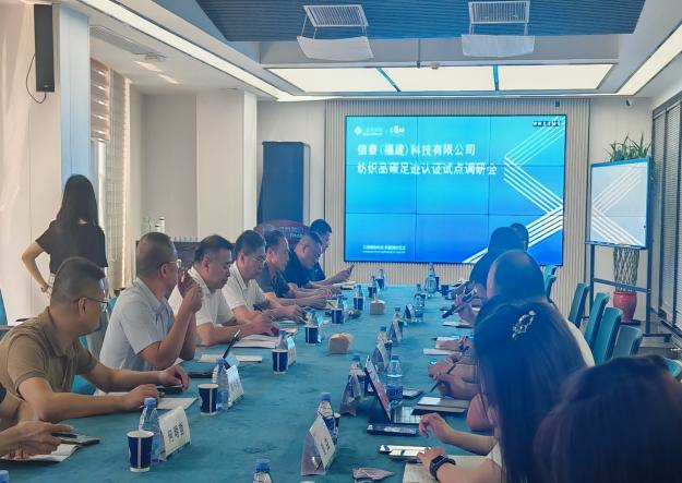 随后,调研组赴信泰集团继续调研。在实地考察生产车间后,召开了企业座谈会。信泰、三六一、卡尔美、大发、港益、世兴达等纺织企业代表先后发言,围绕碳足迹核算方法、认证成本、数据准确性及国际标准对接等问题表达了关切。中国质量认证中心、方圆标志认证集团等机构代表从技术与服务层面回应企业疑问,并介绍了国内外碳标识认证的最新进展与解决方案。