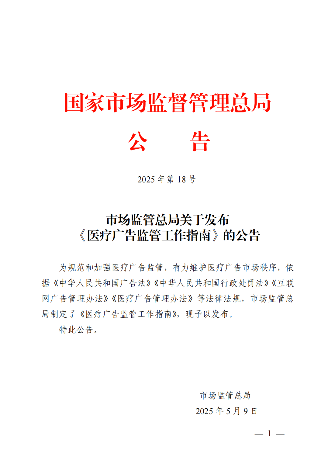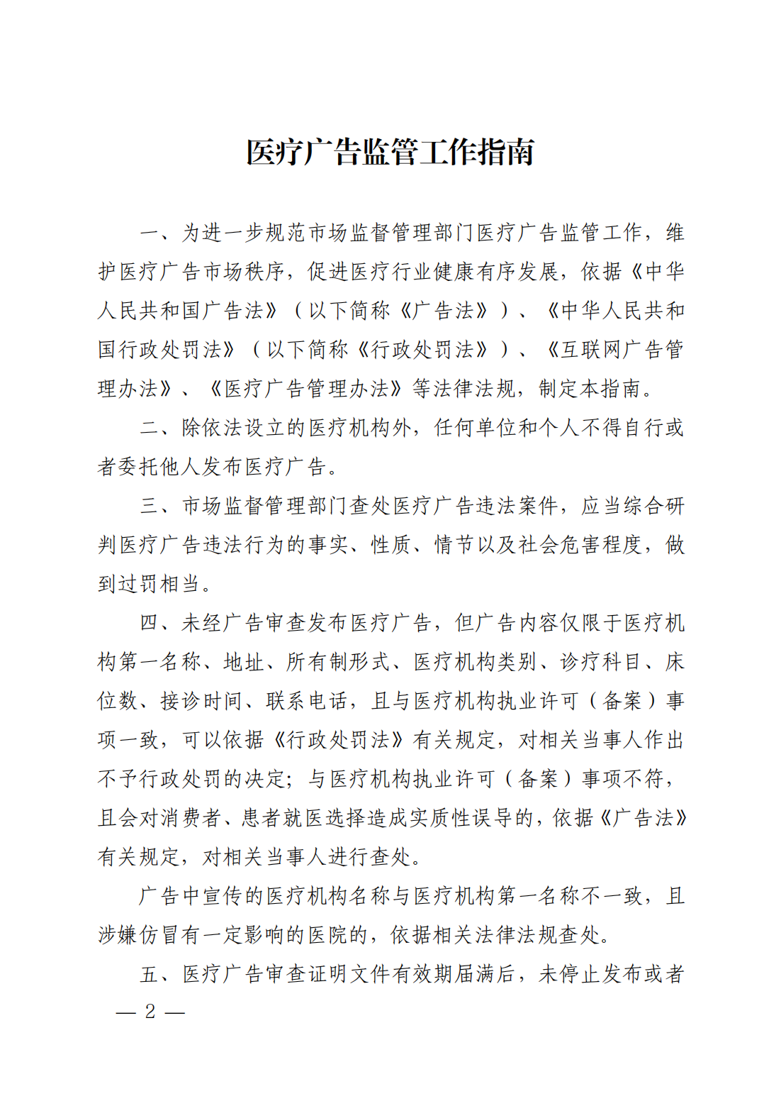 为进一步规范市场监管部门医疗广告监管工作,维护医疗广告市场秩序,促进医疗行业健康有序发展,5月9日,香港六合彩发布《医疗广告监管工作指南》(以下简称《指南》),对医疗广告监管执法的原则和具体监管规则作出细化规定。